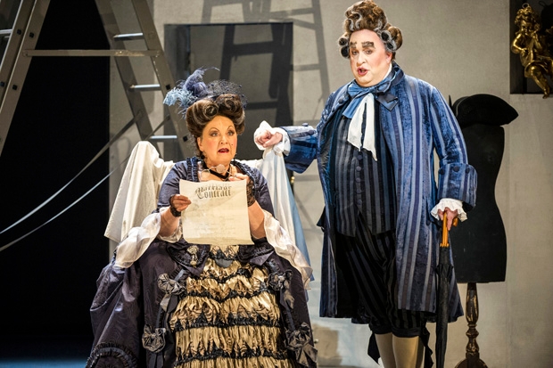 And that’s where WNO’s new Marriage of Figaro succeeds. David Stout’s Figaro bustles in through the audience mid-overture, a touch of pantomime that sets the tone. It’s no bad thing to be reminded that Figaro is a comedy, and throughout the evening, director Tobias Richter gently nudges it over the line. Figaro himself is cheerfully theatrical, all raised eyebrows and flourishing hand gestures. Surreal touches — an exploding iron, a flickering lightbulb — fit well with the big, abstract flats of Ralph Koltai’s set. Characters address the audience directly (Susan Bickley’s Marcellina sipping a glass of champagne as she does so) and Sue Blane’s bright period-appropriate costumes are just cartoonish enough to wink at the artifice without puncturing it.