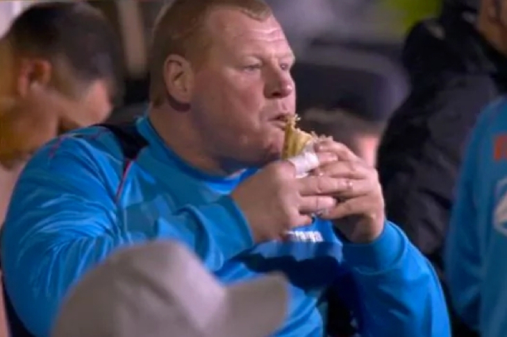 Shaw had heard of the bet before the game. Rather than take offence that people were laughing at his obesity (the correct response in bore-bore land), he decided it would be more amusing to take a meat and potato pie from the club canteen and wolf it down from the subs bench. ‘Bit of banter,’ he has called it.
