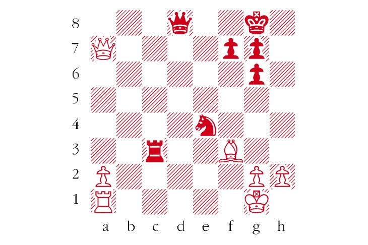 Black to play. This position is from Bluebaum-Vitiugov, Grenke 2018. Can you spot Black’s amazing winning move? Answers to me at The Spectator by Tuesday 1 May or via email to victoria@spectator.co.uk. There is a prize of £20 for the first correct answer out of a hat. Please include a postal address and allow six weeks for prize delivery.