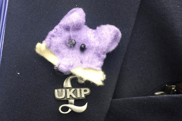 However, Ukip don’t play by the usual rules. In fact senior party figures wear their allegiance to Winston on their sleeve, almost literally. At the launch of the party’s pledge card in Westminster on Monday, party chairman Steve Crowther proudly sported a handmade purple fox that looked like it might have been made by a primary school child.
