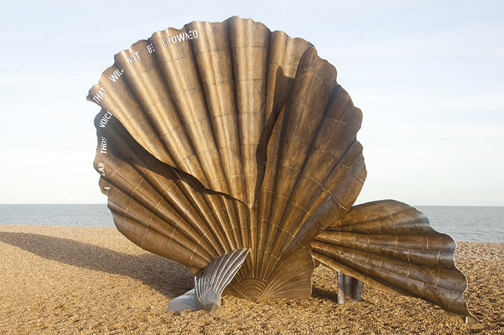 And now there it is, rearing up from the shingle on the stretch of beach between Aldeburgh and Thorpeness along which the composer walked almost daily. I have known Aldeburgh for 50 years; I lived and wrote five novels there during a series of winters, in a house overlooking the North Sea. I still visit often and I cannot imagine it without Hambling’s ‘Scallop’. It blends into and is moulded with the sea, shingle, sky, the whole landscape, so perfectly that it is like a limb, and to tear it away would leave the body irreparably wounded and be an act of vandalism.