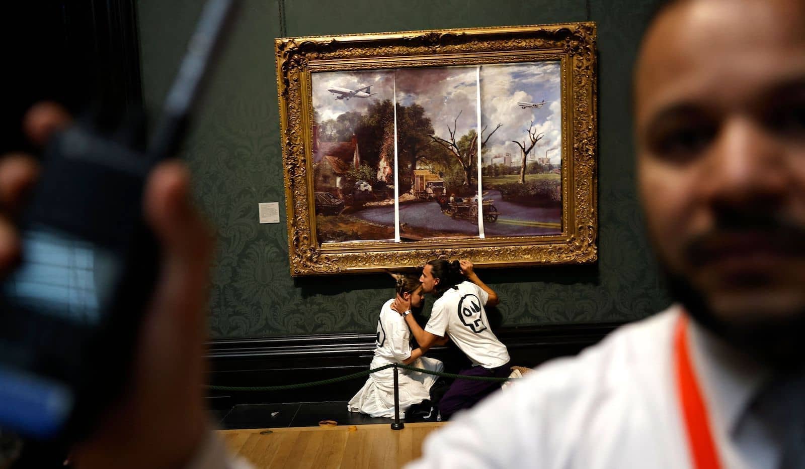 Yesterday, a pair of Just Stop Oil protesters glued themselves to a John Constable painting in the National Gallery, covering The Hay Wain with a printout of an alternative vision of England. The cart crossing the River Stour in Suffolk is perhaps Constable’s most famous painting. But instead of a bucolic, biscuit tin Albion, Just Stop Oil’s version shows the Stour tarmacked over, a belching power plant in the distance and a commercial jet overhead. The message is clear: our modern world is sick.