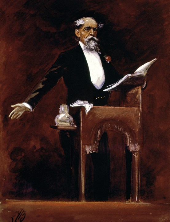 As Charles Dickens lay in his coffin, his will was read out to the assembled mourners. ‘I conjure my friends,’ he sternly instructed them, ‘on no account to make me the subject of any monument, memorial or testimonial whatever.’ It’s an appeal that later generations have studiously ignored, as can be seen in the piles of commemorative merchandise that are available to purchase online. These range from a fully poseable Dickens action figure (‘with quill pen and removable hat’) to a T-shirt featuring his face and the slogan ‘I put the lit in literature’.