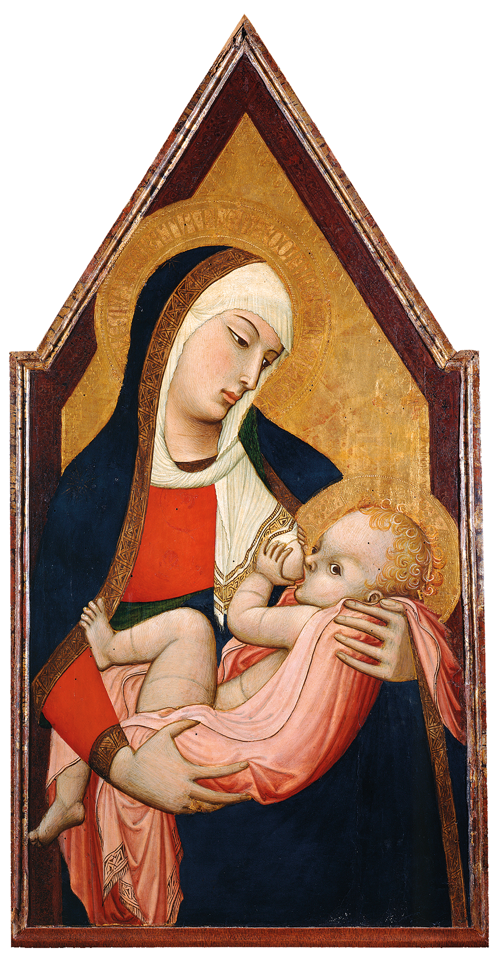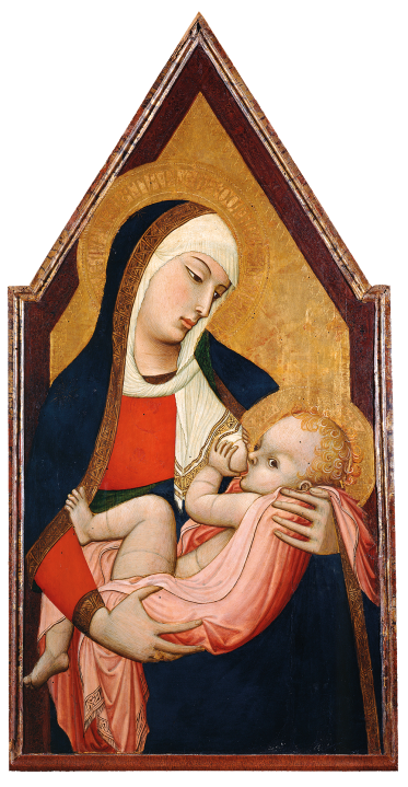 The standout work from the younger brother Ambrogio is his ‘Madonna del Latte’ (c.1325), where we see mum proffering her breast to her toddler who – as older breastfed babies often do – wants to combine a feed with some wider interaction. In this case, he’s fixing directly on us, the viewers, while his legs loll and sprawl, drunk on milk. His mother, as mothers do, is gazing at him – her precious boy.