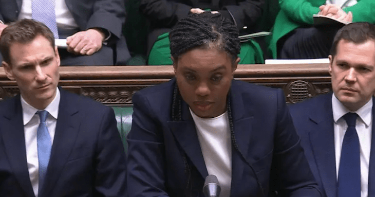 Badenoch complained again that he wasn’t answering her question. What she wanted to know was whether the government was going to introduce new legislation clarifying the right to a family life, and whether he agreed that ‘we should legislate even if lawyers warn that this might be incompatible with human rights law’.