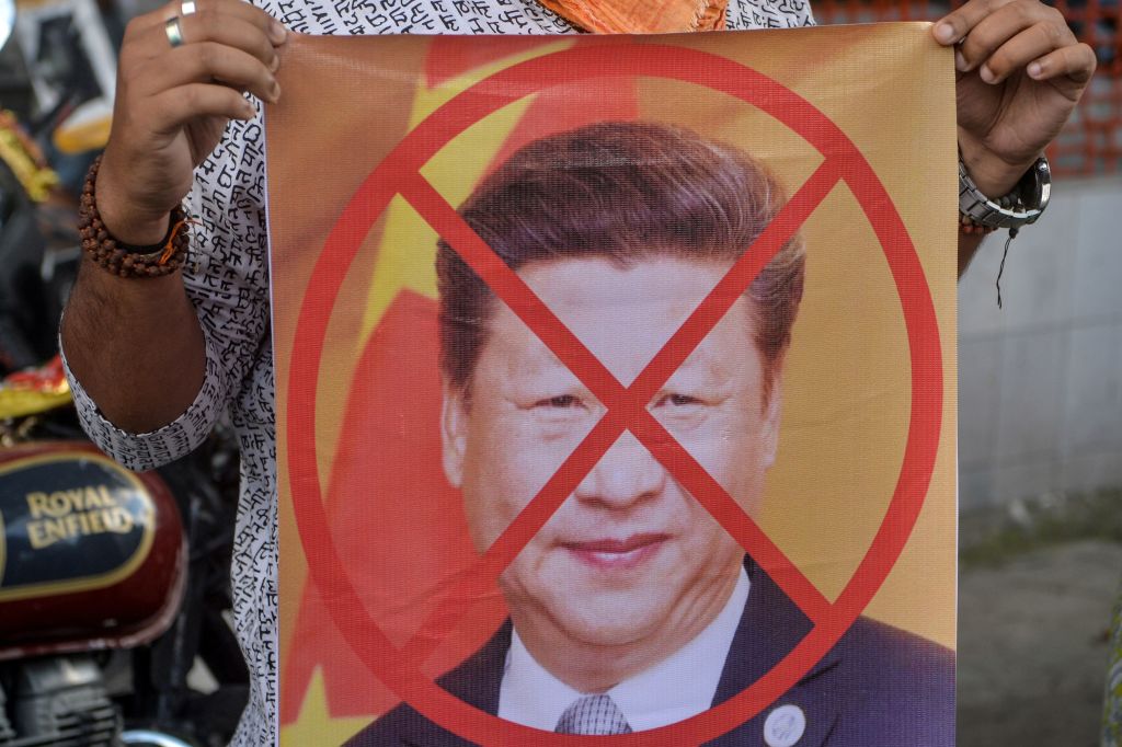 Activists in India prepare to burn an effigy of Chinese president Xi Jinping (Getty images)
